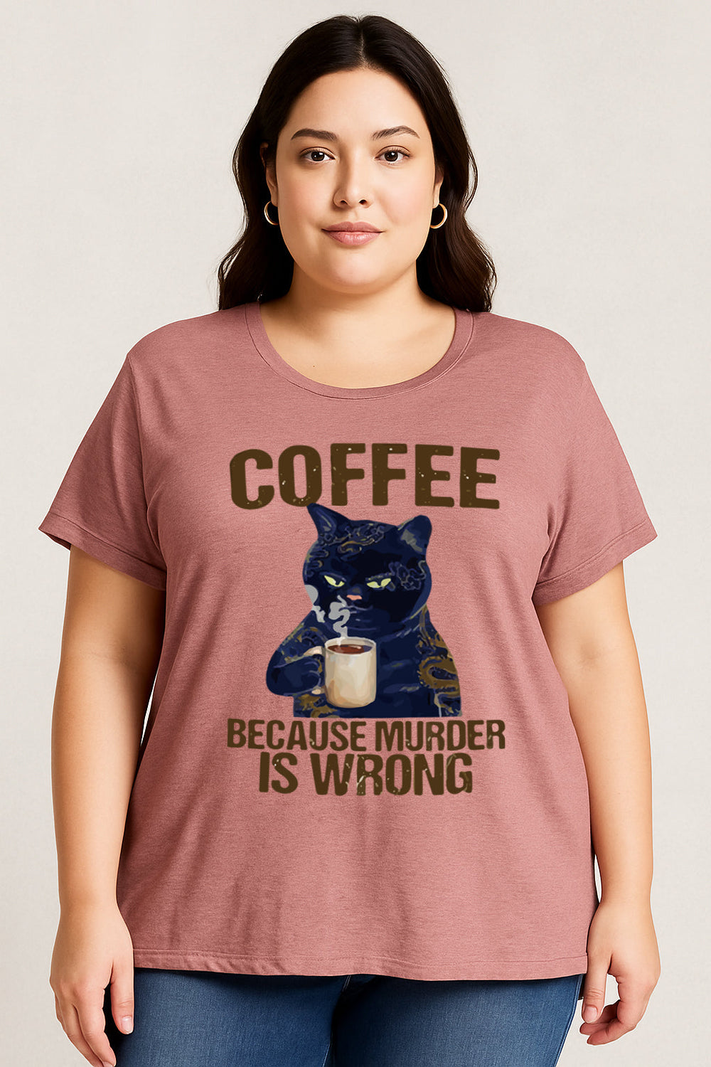 Featuring a unimpressed, coffee-sipping cat, this tee is for those who let caffeine keep the peace. 😆